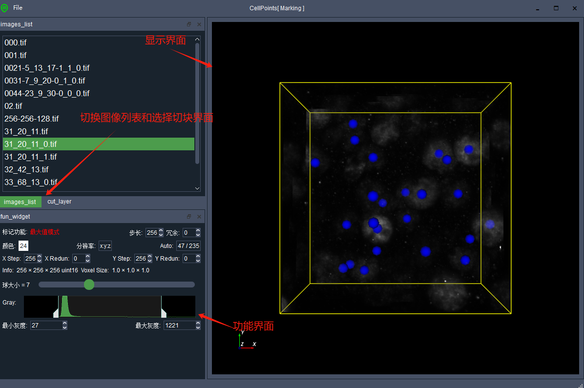 3、显示界面:包括左键点击旋转、中键滚动缩放、中键点击平移。其中Images_list图形选择界面:可以点击选择以及Alt+W/S上下切换选择图形