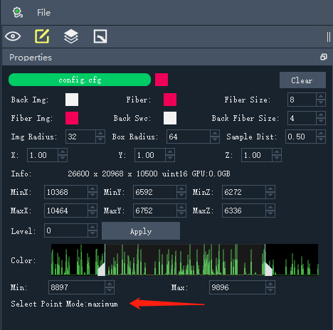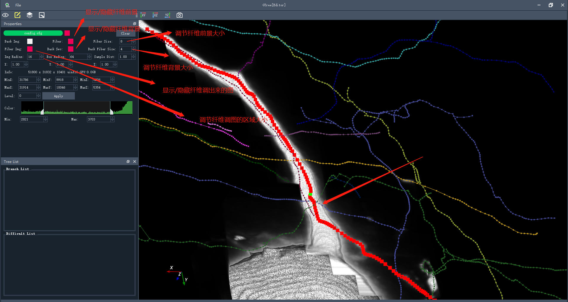 1) Ctrl+鼠标左键(选中一个点):加载纤维的背景图像