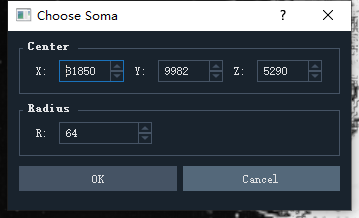 2、输入胞体的坐标(这个会提前给定);Radius代表可视化区域显示的大小。