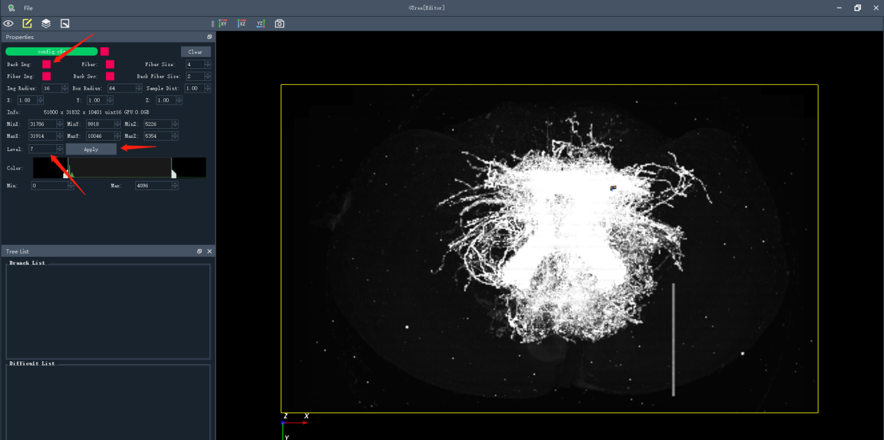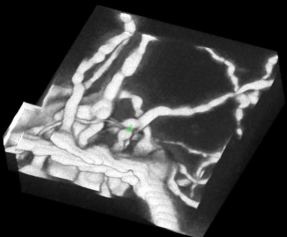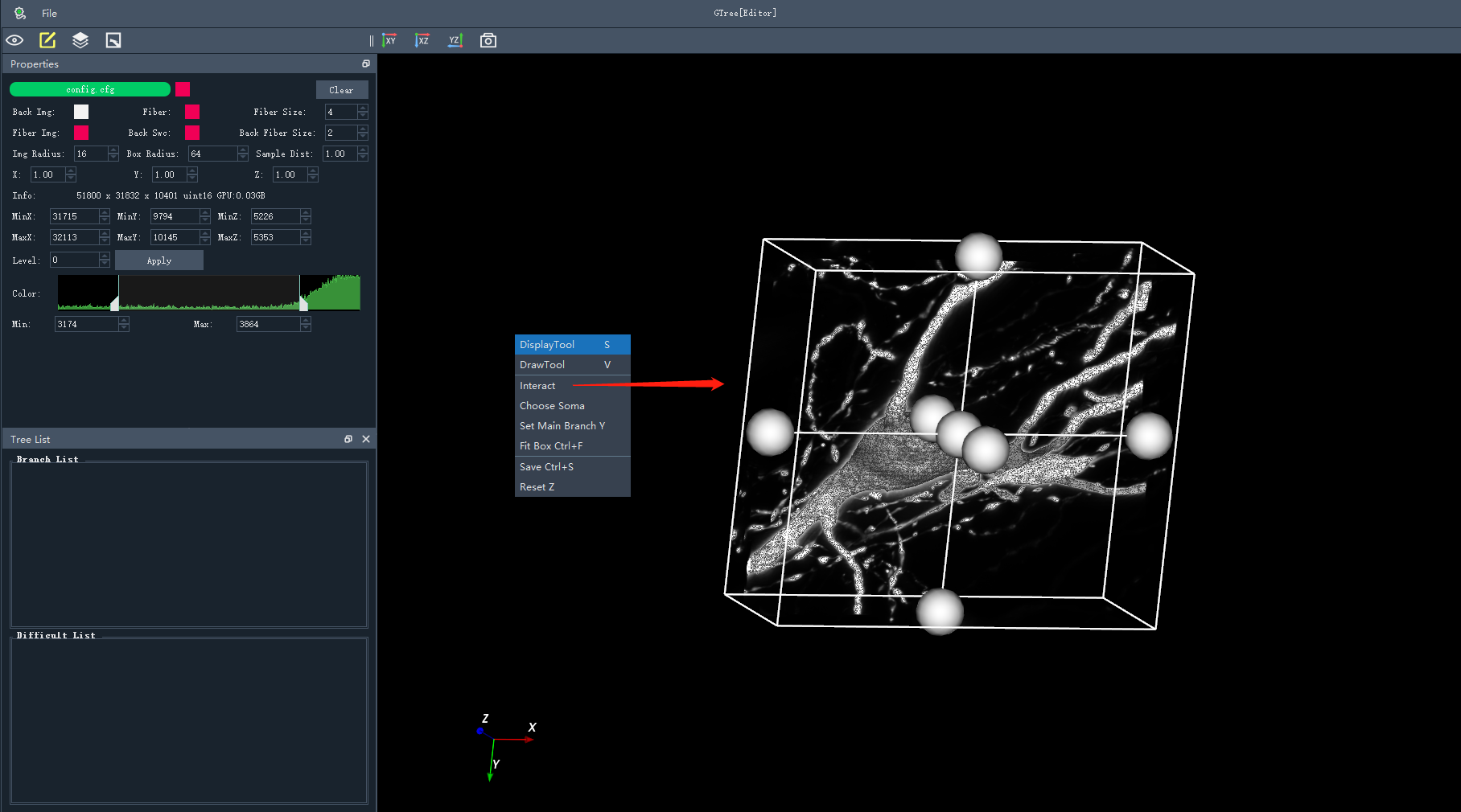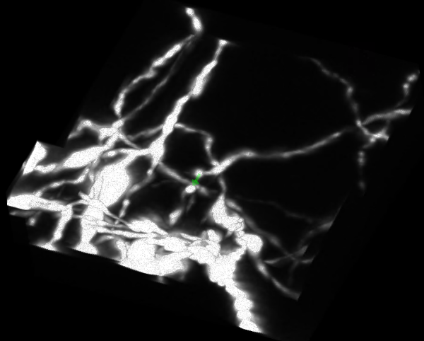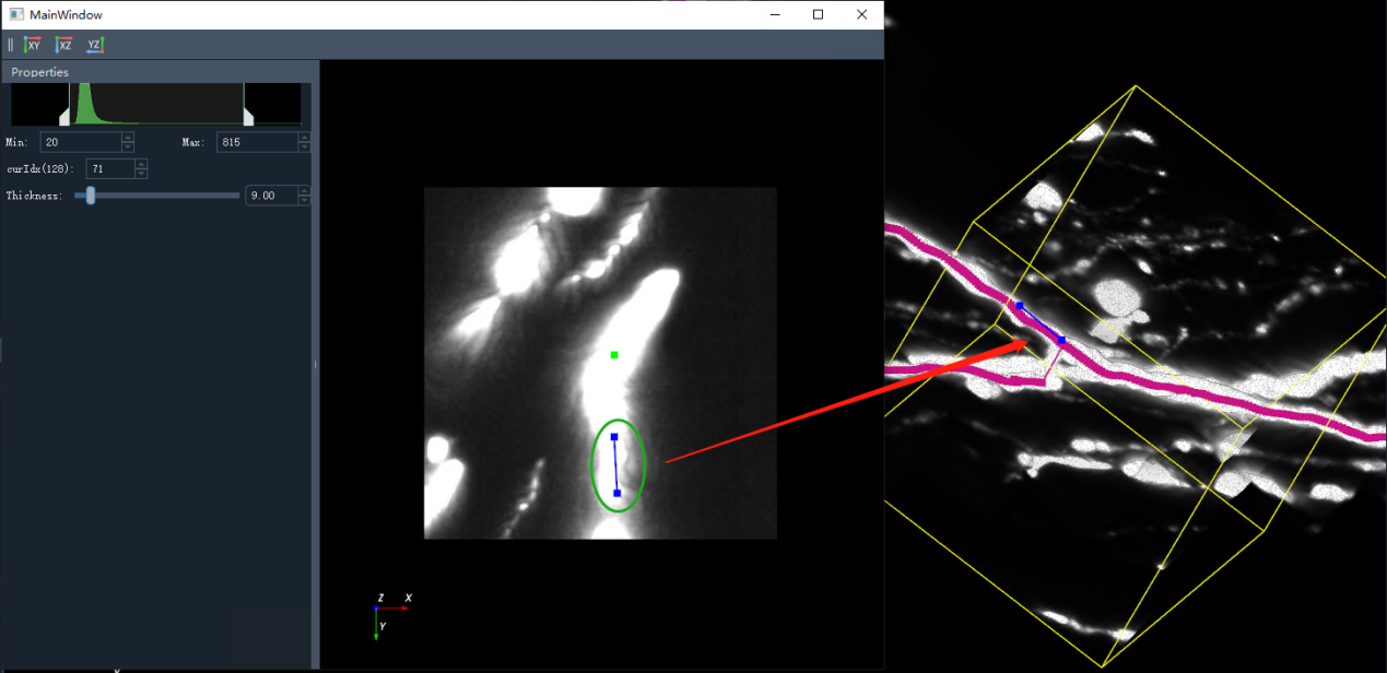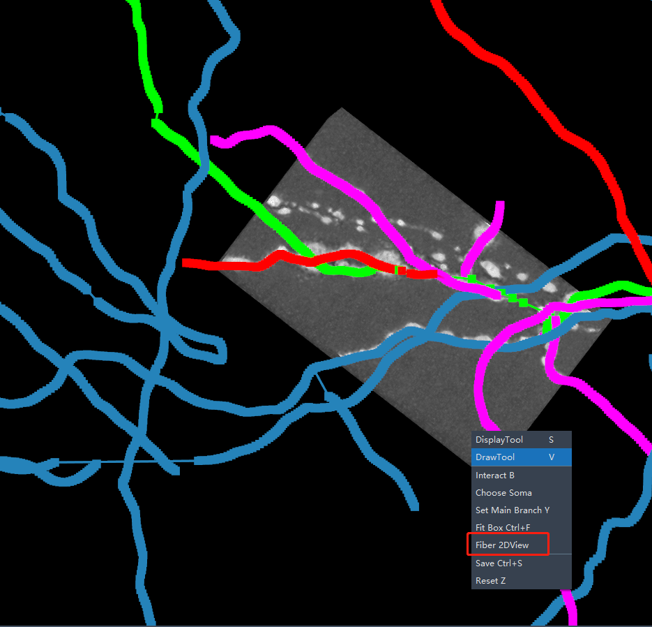 1、“Ctrl+鼠标左键”单击前景纤维;调出对应的图像背景;用来确认是否是一根神经元。