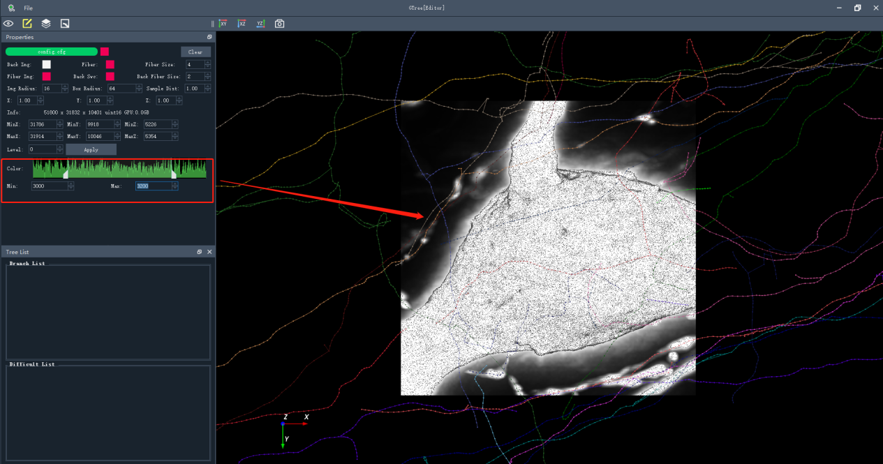 3、 Fitbox(快捷键:Ctrl+F)自动调出对应的感兴趣区域。根据当前纤维调图出来的图像。无法准确判断纤维的走向。