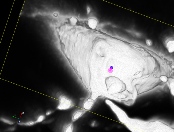 5、设置主分支按“v”,进入画点模式:在胞体上点击后胞体上将出现一个点,按下“s”,保存该点(如下图左图所示);鼠标选中该点,按“Y”,将该点设为主分支(如下图右图所示)