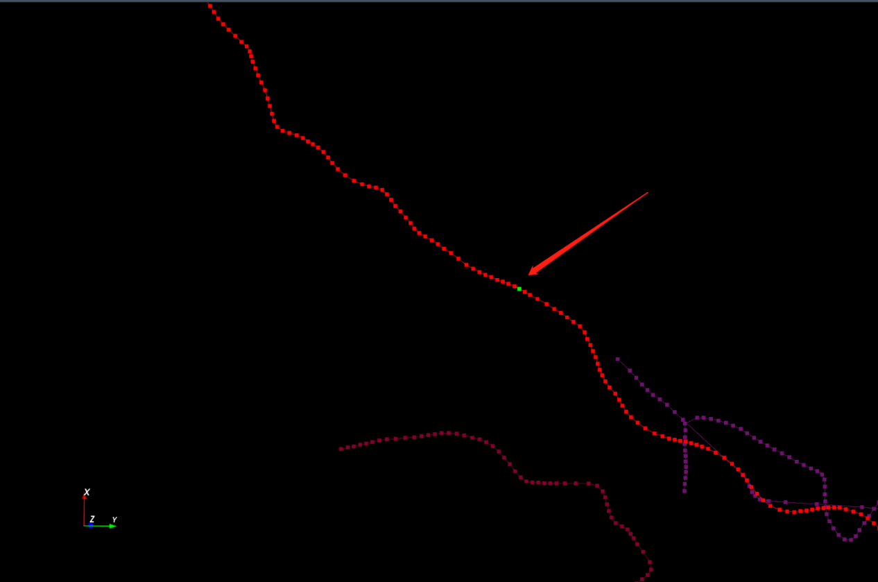 3、左键单击需要追踪的位置,直接点到对应的图像上面(红色箭头代表点击的四个点,中间的点为算法自动填充);Ctrl+Z 撤销上一步。”Z”一个点一个点撤回,若需要继续向前画点,点击空格,自动加载前面的图像,可继续画点。