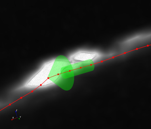 4、结束2D模式。关闭2D窗口后,3D界面将会显示在2D模式下追踪的神经元;删除该条神经元(左键单机后,按“D”删除);和其他分支合并(Alt+鼠标左键(选中二个点))