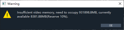 注:当选择区域过大时,level值过小时,会出现显存不够的情况,此刻会有小窗口提醒,如图
